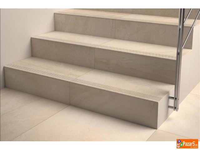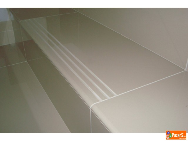 Оборување на ивици на плочки за изработка на скали и цокле.За да не се става лајсна совршено изгледа ако ивицата на самата плочка е фино обработена.Цената е само 2 евра за 1 метар должина.