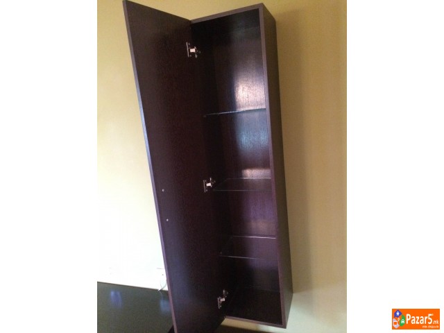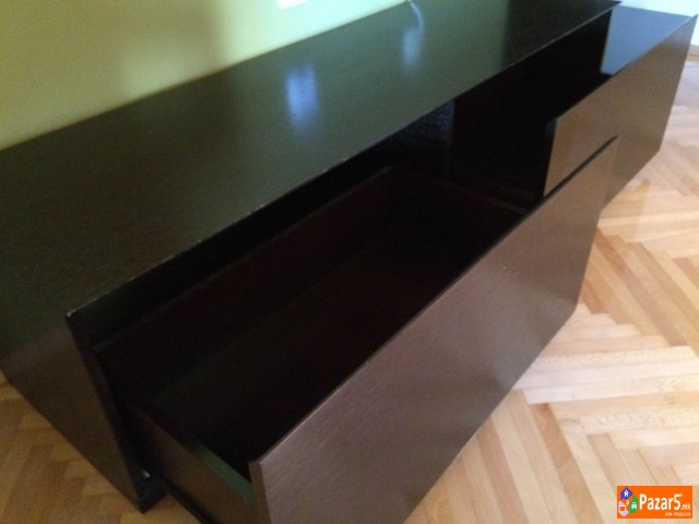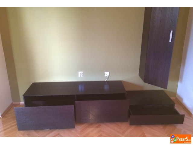 Продавам комода за телевизор со три фиоки и плакар со полици. Изработени се од дрво, боја темно кафеава/венге.